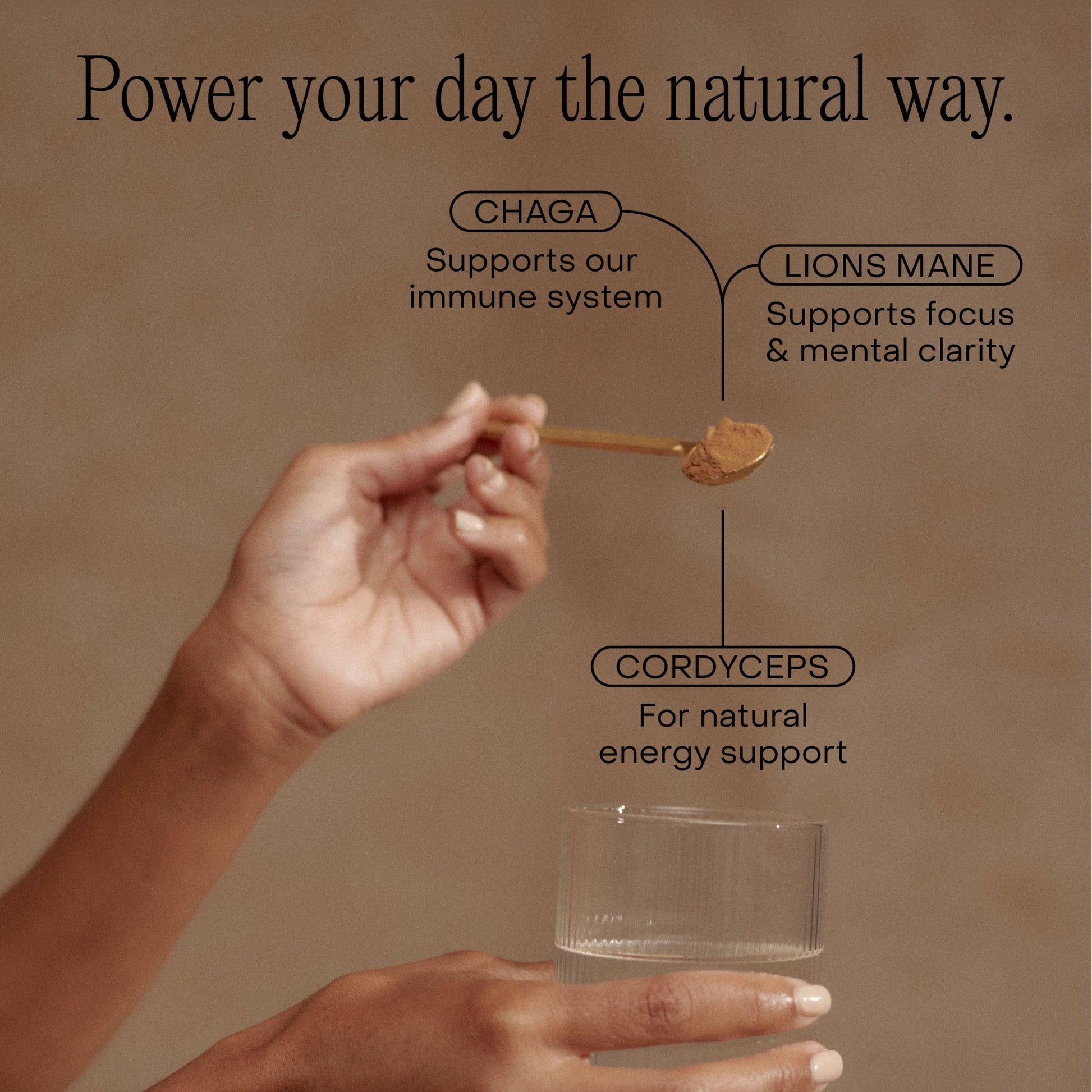 Stir 1–2 teaspoons into your morning coffee, smoothie or warm drink. It has an earthy flavour that blends well and won’t overpower other ingredients. Try adding it to overnight oats, chia pudding, or savoury options like mushrooms on toast. With this versatile supplement, your options are endless.