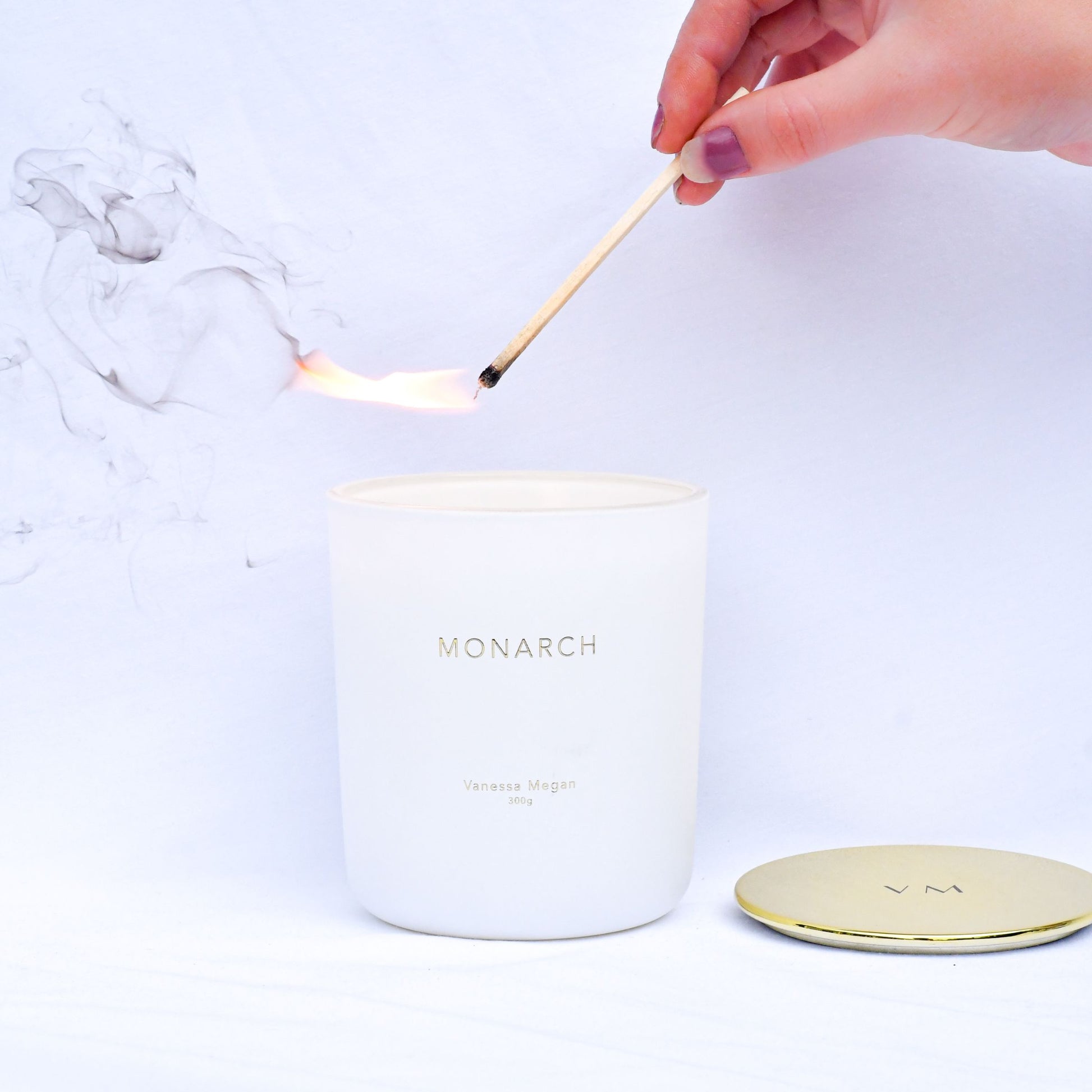 Absolutely. The Vanessa Megan Monarch candle mirrors the Monarch 100% Natural Perfume, making it a perfect layering companion. Together, they allow you to layer this iconic fragrance from skin to space for a complete sensory experience.